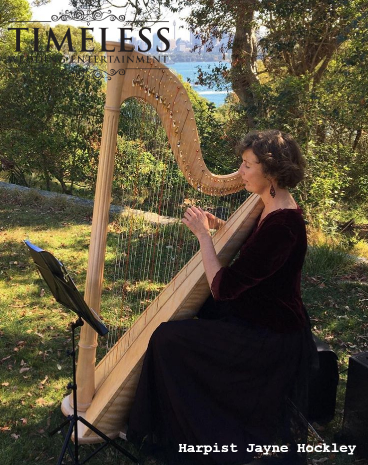 Jayne Hockley specialises in playing beautiful harp music at events such as weddings, corporate functions, birthday parties and funerals in and around Sydney. She plays a fine maple harp made by Tim Guster in South Australia. Jayne loves to share its rich, warm tone and plays a repertoire ranging from medieval to modern styles, with a focus on classical and Celtic music.
